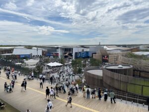 暑さと人の多さで汗だくになりながら、1時間ほどかけてようやく入場ゲートに到着。飛行機の搭乗口のように厳重なセキュリティチェックがあり、万博のスケールの大きさを実感しました。