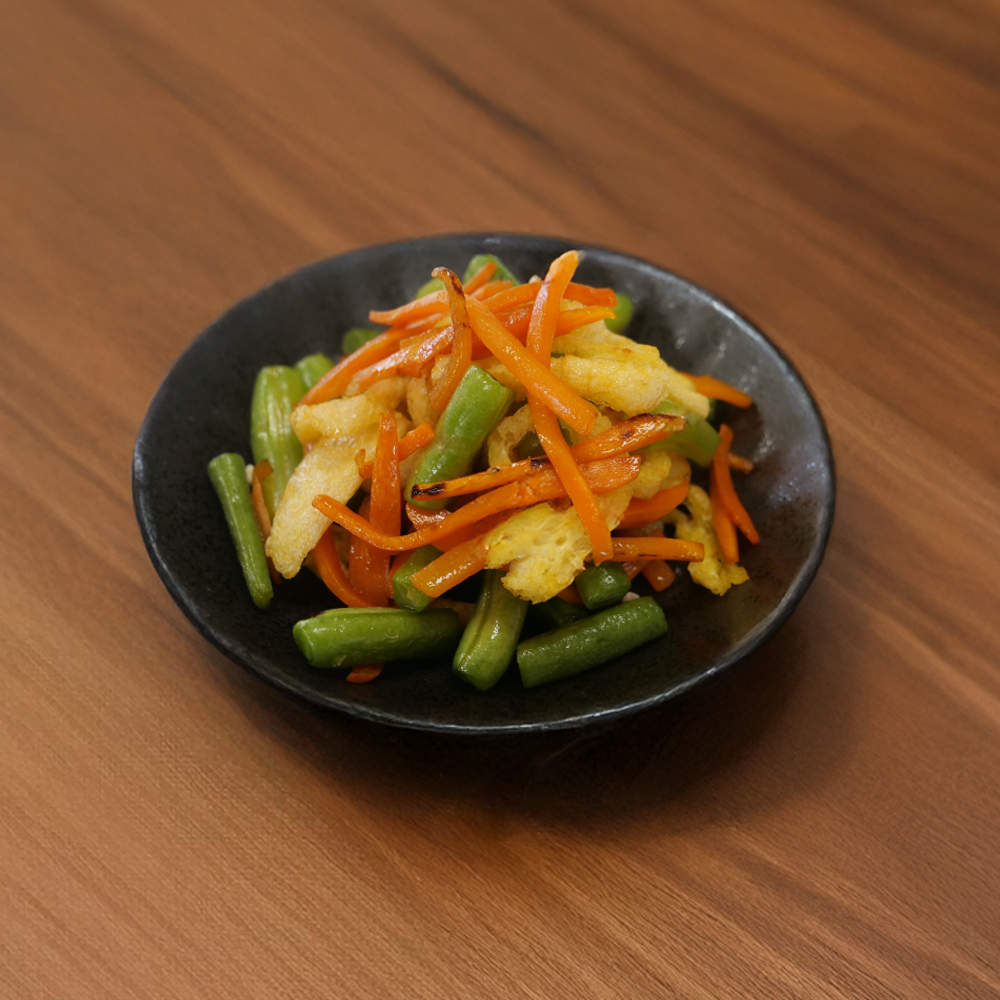 元気な畑のごちそう > 野菜をたのしむ > おやさいレシピ > すじなしいんげん > いんげんとにんじんのきんぴら > あぶらあげ