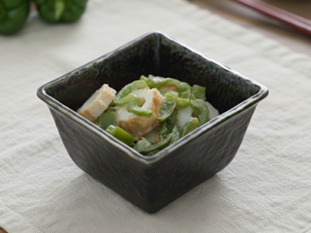 サッパリおつまみ ピーマンのちくわマヨぽん 分量 2人分 材料 ピーマン3個ちくわ2本A)マヨネーズ大さじ1 A)ぽん酢 小さじ1A)白ごまお好み 作り方 1、ピーマンは縦半分に切り、種とワタを取る。2、細く切ってラップをし600wで1分半加熱する。3、ちくわを輪切りにし、粗熱を取ったピーマンを加える。4、Aを混ぜる。
