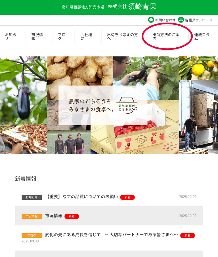 トップページの「出荷方法のご案内」からぜひご覧ください。