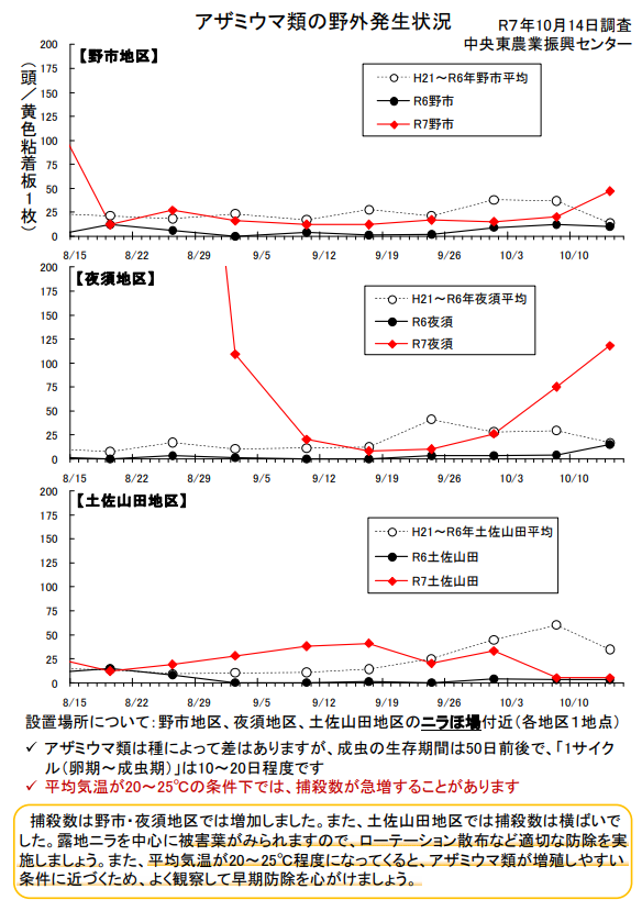 中央東農業振興センター様による香美地区ニラ生産者対象のアザミウマ類の発生状況に関する調査資料