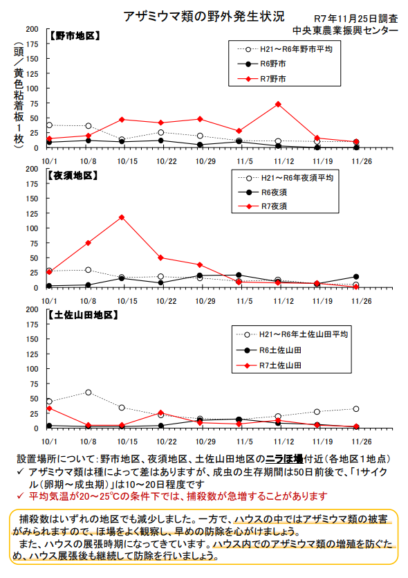 中央東農業振興センター様による香美地区ニラ生産者対象のアザミウマ類の発生状況に関する調査資料