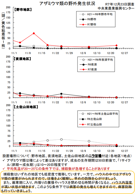 中央東農業振興センター様による香美地区ニラ生産者対象のアザミウマ類の発生状況に関する調査資料