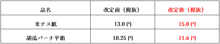 誠に不本意ではございますが、製品の安定供給を維持するため、下記の通り価格の改定をさせていただきます。