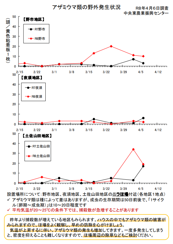 中央東農業振興センター様による香美地区ニラ生産者対象のアザミウマ類の発生状況に関する調査資料